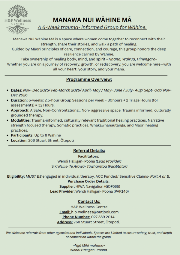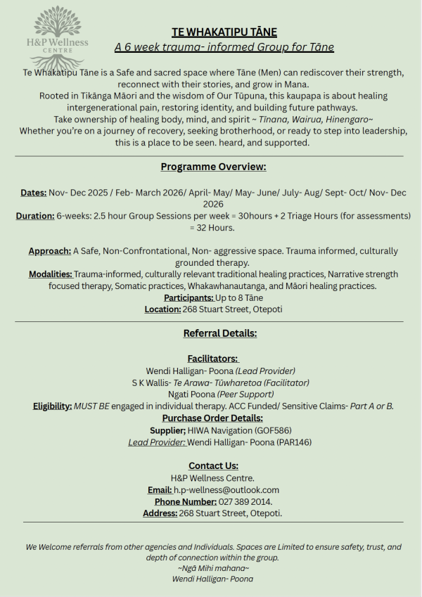 Men's Therapy Group - Cinnamon Boreham (Provider ID PAN897: Vendor ID G0F586 Hiwa Navigation 32 hours)